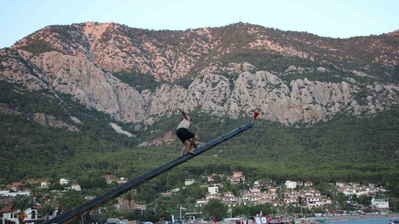 Kumluca’da Kabotaj Bayramı etkinliklerinde yağlı direkten bayrağı alan kişiye verilecek 10 bin TL ödül için yarışmacılar kıran kırana mücadele etti. Kaburga ve kafa gibi değişik yerlerini direğe çarparak yaralanan yarışmacılar ambulans ile hastaneye kaldırıldı.