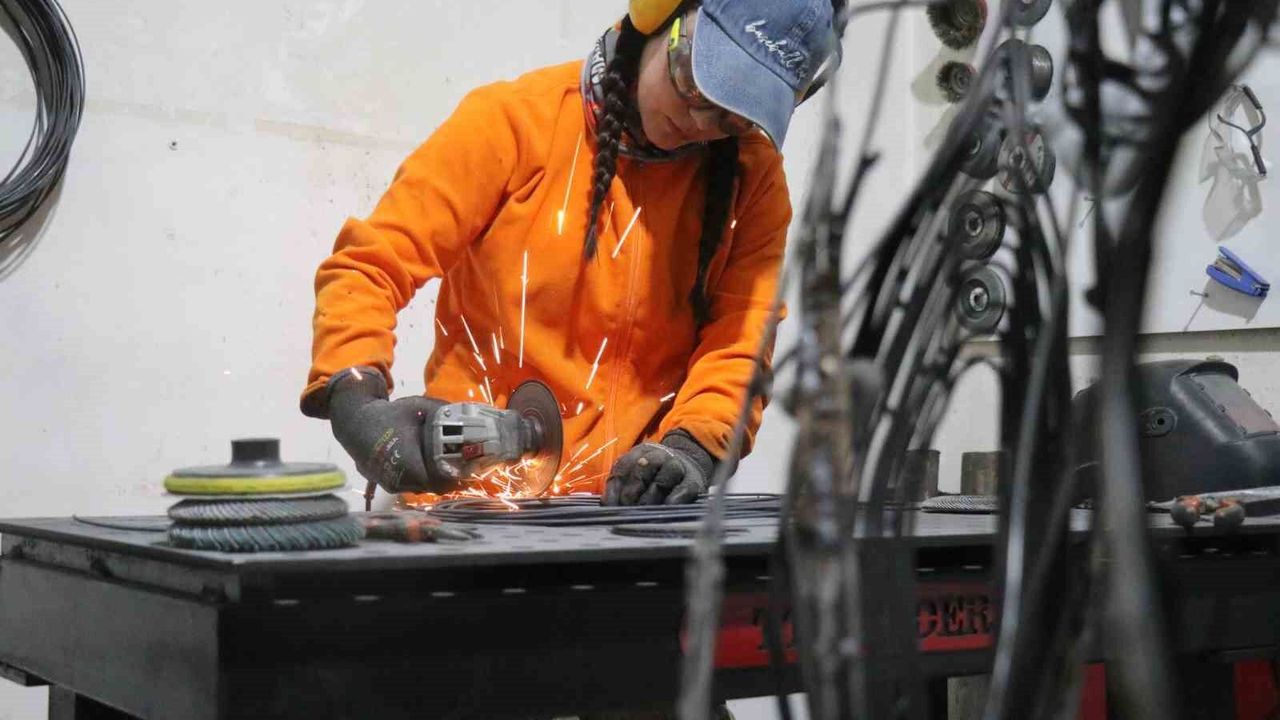 İstanbul'daki hayatını bırakarak 2,5 yıl önce Sakarya'nın Akyazı ilçesine yerleşen 30 yaşındaki sanatçı Gülfidan Soyuğur, 12 metrekarelik küçük atölyesinde dev eserlere imza atıyor. Bir zamanlar dokunmaya bile korktuğu metal malzemeyi estetik figürlere dönüştüren Soyuğur'un eserleri, Türkiye'nin yanı sıra Kıbrıs ve Almanya gibi ülkelerde sergileniyor.