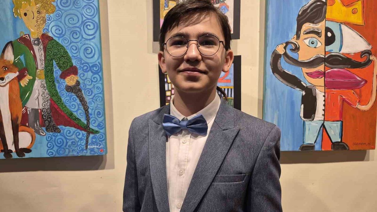 Eskişehir'de 12 yaşındaki ortaokul öğrencisi Egemen Eren, 6 yıllık resim eğitimi serüvenini 'Fikirlerin Okyanusu' adlı kişisel resim sergisiyle taçlandırdı.