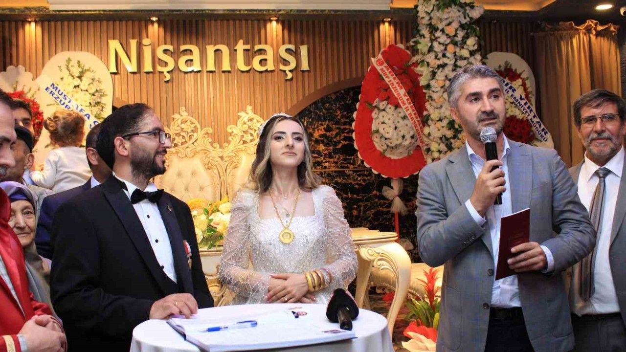 Düğün törenine, damadın silah arkadaşları Ali Kınık’ın "Yalnız Değilsin" şarkısı eşliğinde ellerinde Türk bayrağıyla salona girerek duygusal anlar yaşattı. Nikahı Yakutiye Belediye Başkanı Mahmut Uçar kıyarken; törene Erzurum Vali Yardımcısı Ahmet Özdemir, Aile ve Sosyal Hizmetler İl Müdürü Hasan Aykut, MHP Erzurum İl Başkanı Adem Yurdagül, Türkiye Gazileri ve Şehit Aileleri Vakfı Erzurum Şube Başkanı Rıza Demir ile çok sayıda davetli katıldı.