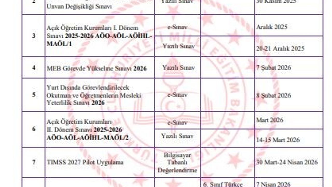 Milli Eğitim Bakanlığı tarafından 2026 yılı sınav uygulama takvimi yayımlandı.