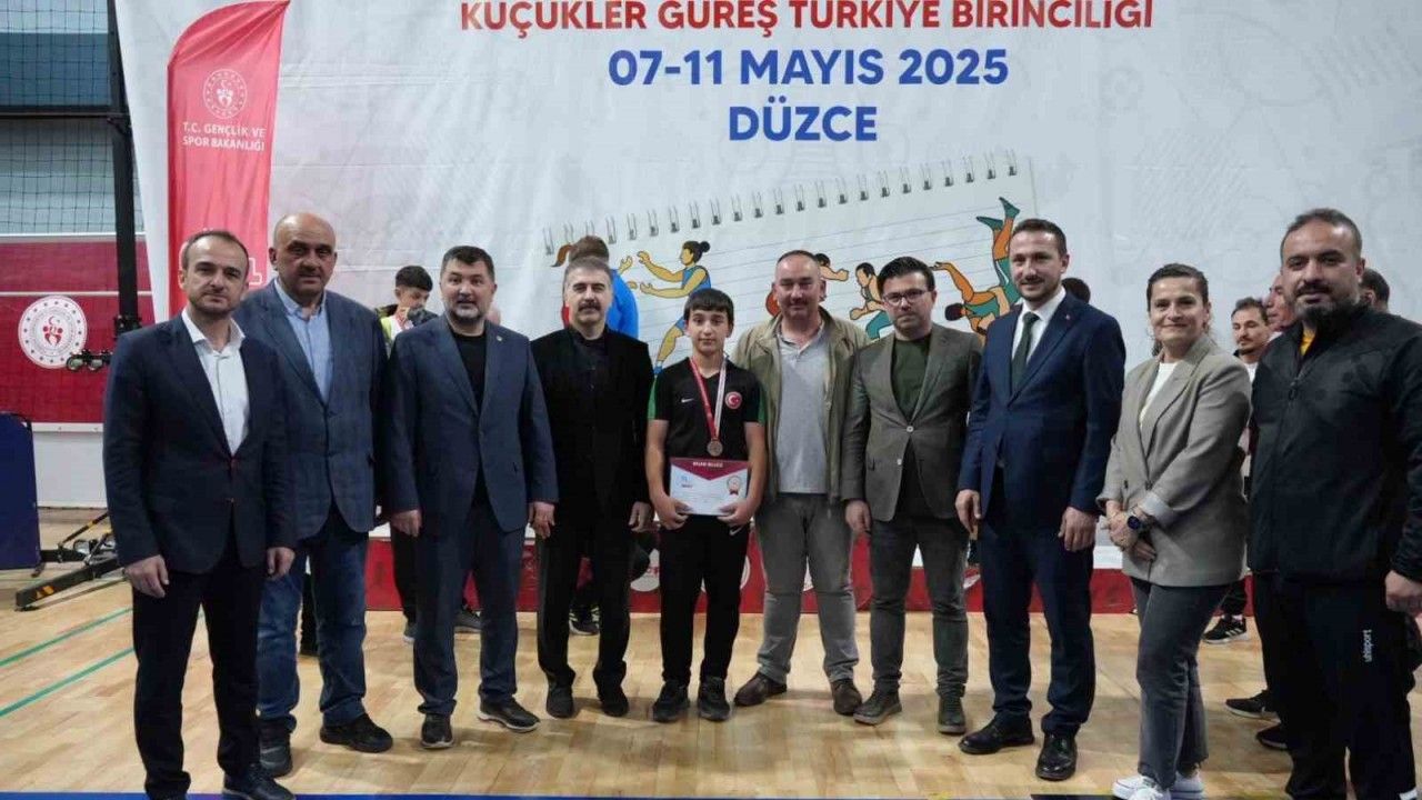 Düzce Bahçeşehir Spor Salonunda düzenlenen Okul Sporları Küçük Erkekler Serbest ve Grekomen stilde Güreş Türkiye Birinciliği 41 ilden yaklaşık 700 katılımcı ile tamamlandı. Ülkemizin dört bir yanından gelen küçük pehlivanlar minderde ter döktü. Okul Sporları Küçük Erkekler Güreş Türkiye Birinciliği ödül törenine AK Parti Düzce Milletvekili Ercan Öztürk, Vali Yardımcısı Ömer Yılmaz, Gençlik ve Spor İl Müdürü İsa Yazıcı ile AK Parti Düzce İl Başkanı Hasan Şengüloğlu katıldı.