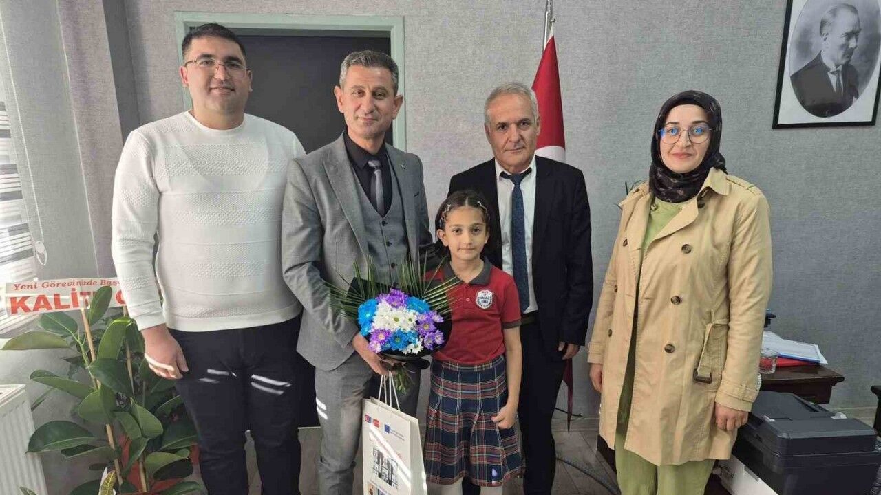 Başarılı öğrenci, ailesi ve okul müdürü Halis Şimşek ile birlikte İl Milli Eğitim Müdürlüğü’nü ziyaret etti. Ziyarette Müdür Altay, üstün performans sergileyerek birincilik elde eden Hüma Daşdemir’i tebrik ederek ödüllendirdi.