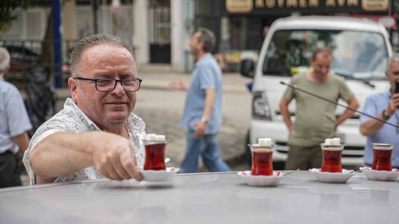 Bursa’da Osmangazi ilçesinde esnaf Ali İhsan Olcay, dükkanına 50 metre yakınındaki çay ocağından aldığı çayları, dükkanına kadar kendi otomobiliyle taşıyor. Kimi zaman komşularına da otomobiliyle çay servis eden Olcay, hem espri olsun diye hem de pratik olmasından dolayı bu şekilde taşıdığını söylüyor. Bu güne kadar ne bardak kırdığını ne de çayı dökmediğini belirten Olcay, aracıyla çay taşıdığı görüntülerin sosyal medyaya düşmesinden sonra nazar gelmesinden endişe ediyor.