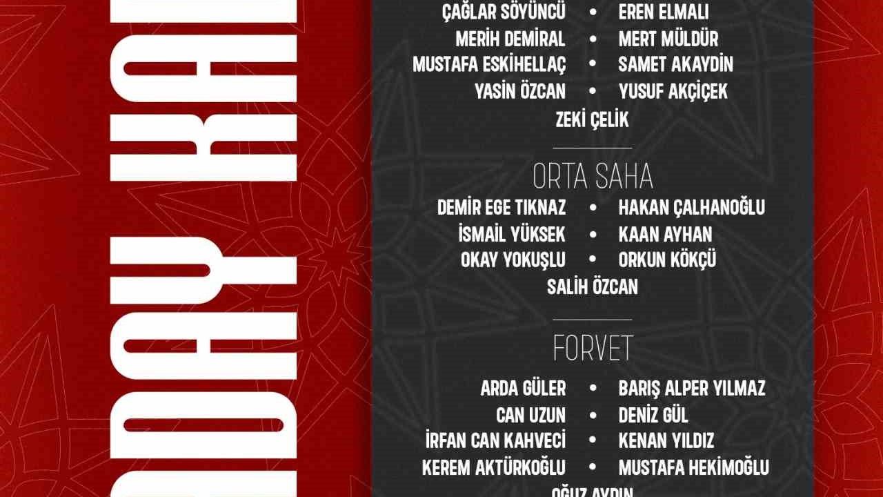A Milli Takım’ın aday kadrosunda yer alan futbolcular şu şekilde: