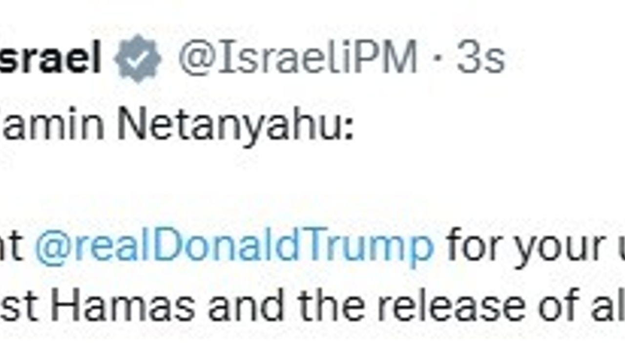 İsrail Başbakanı Binyamin Netanyahu ise, sosyal medya platformu "X" teki resmi hesabından yaptığı paylaşımda Trump’a teşekkür ederek, "İsrail’in Hamas’a karşı mücadelesine ve tüm rehinelerin serbest bırakılmasına yönelik sarsılmaz desteğiniz için teşekkür ederim Başkan Donald Trump" açıklamasında bulundu.
