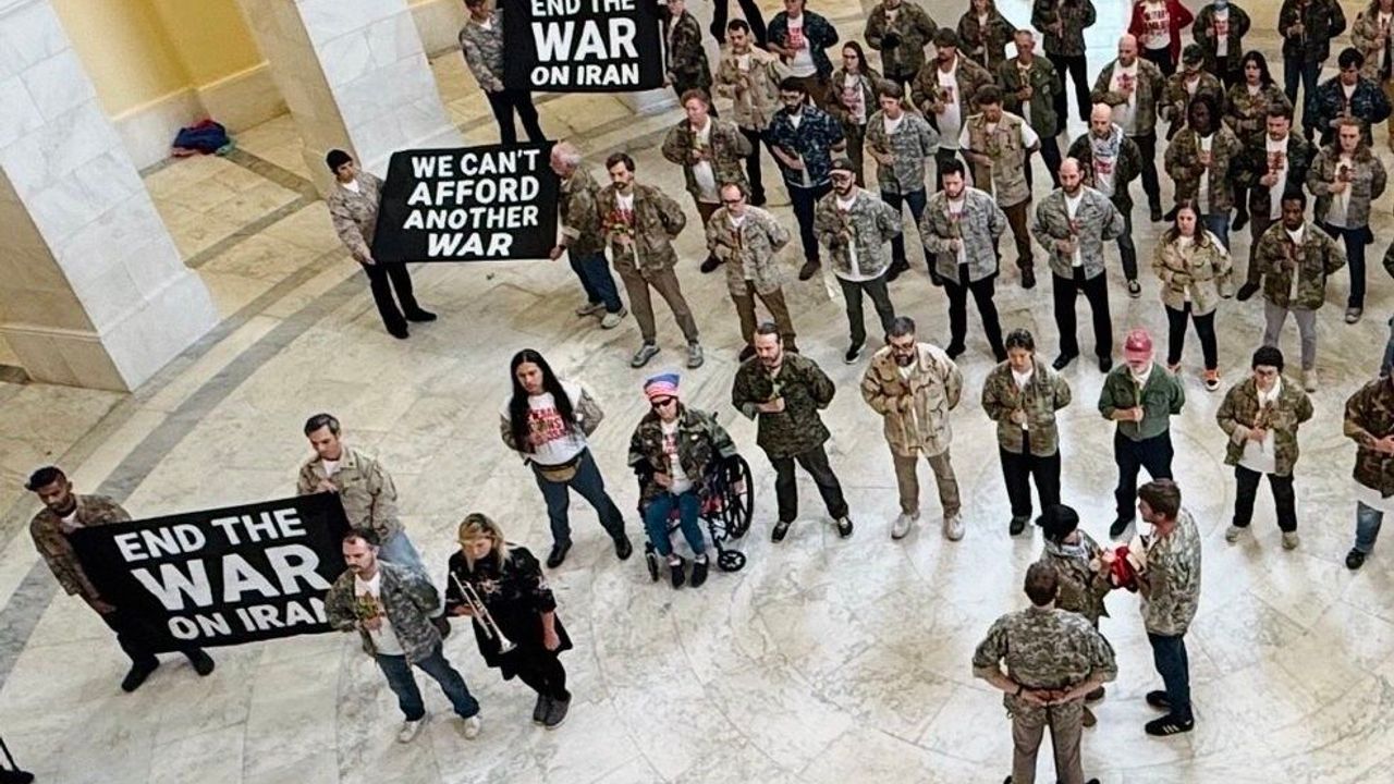 ABD'nin başkenti Washington'da İran'a karşı savaşı protesto eden gazi örgütleri, Kongre binasında toplandı. Protestocular, ABD saldırılarında öldürülen İranlıları anmak için kırmızı laleler taşıdı ve 'İran'a karşı savaşa son verin' yazılı pankartlar açtı. Savaş sırasında ölen 13 ABD askerini de anan protestocular, savaş karşıtı sloganlar attı. Capitol Polisinden protestoculara müdahale gecikmedi. Aralarında engellilerin de bulunduğu 62 gazi ve aile üyesi plastik kelepçe takılarak gözaltına alındı.