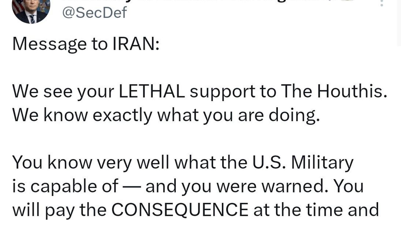 ABD Savunma Bakanı Pete Hegseth, İran’ın Yemen’deki Husilere verdiği desteğin cezasız kalmayacağını belirterek, "Sonuçlarına, bizim seçeceğimiz zaman ve yerde katlanacaksınız" uyarısında bulundu.