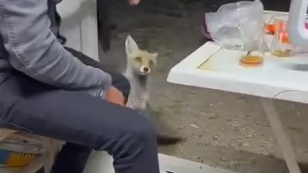 Niğde’nin Karanlıkdere köyünde aç kalan bir tilki, gece saatlerinde yiyecek bulmak umuduyla evlerin çevresine indi. Tilkinin çaresizliğine kayıtsız kalamayan köy sakinlerinden biri, hayvana kendi elleriyle yiyecek yedirdi.