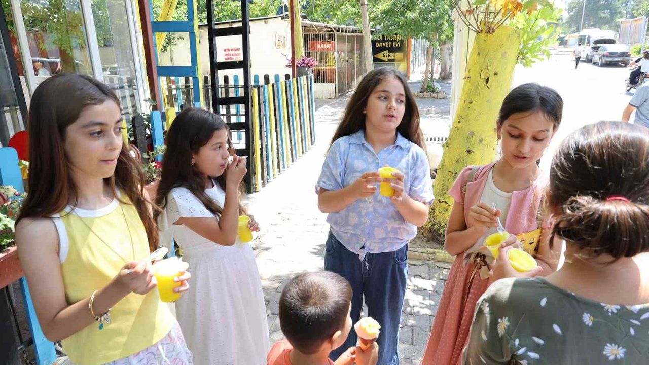 Sıcaklığı ile bilinen Adana’nın Kozan ilçesinde öğrencilere karne hediyesi olarak limon dondurması ikram edildi.