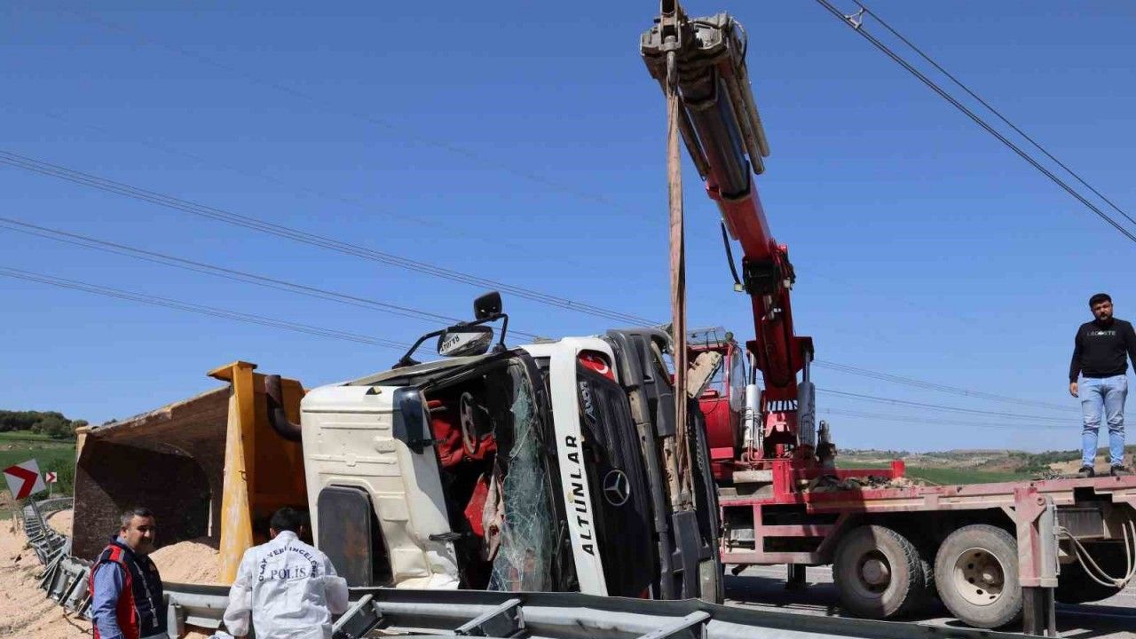 Adıyaman’da viraja girerken sürücüsünün kontrolünden çıkan tır devrildi. Meydana gelen kazada tır sürücüsü hayatını kaybetti.