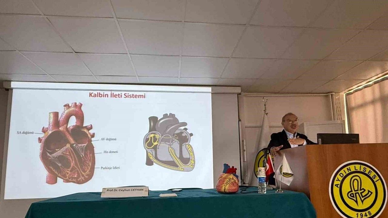 Aydın Lisesi tarafından sürdürülen ’Akademisyenlerin Derslere Girmesi Projesi’ kapsamında, Aydın Adnan Menderes Üniversitesi Tıp Fakültesi Kardiyoloji Anabilim Dalı Başkanı Prof. Dr. Ceyhun Ceyhan öğrencilerle bir araya gelerek hem akademik ders verdi hem de tıp fakültesi ve meslek seçimi konusunda bilgi paylaştı.
