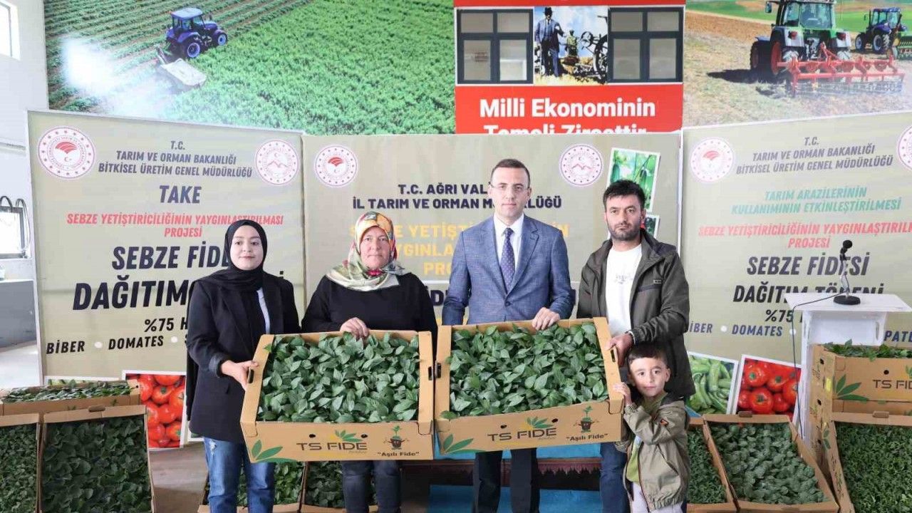 Ağrı’da tarımsal üretimi desteklemek ve sebze yetiştiriciliğini yaygınlaştırmak amacıyla 150 çiftçiye yüzde 75 hibe destekli 147 bin adet sebze fidesi düzenlenen törenle dağıtıldı.