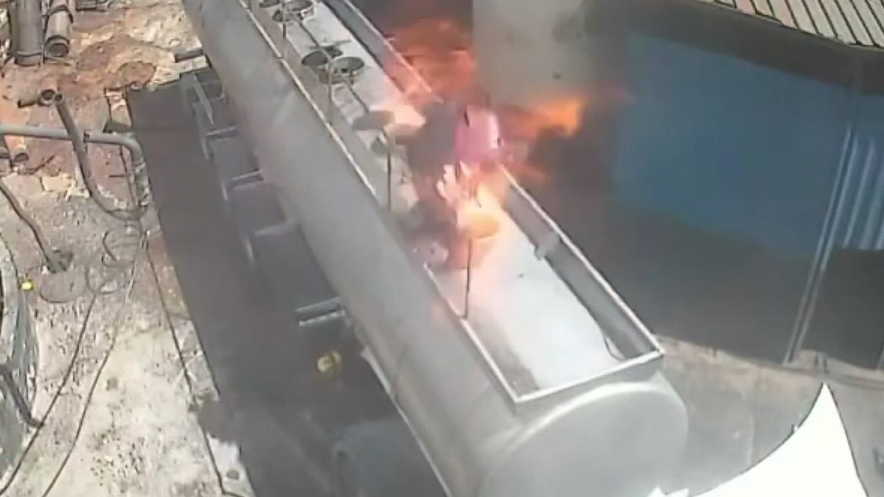 Gaziantep’in Nizip ilçesinde ayçiçek yağı fabrikasında bir işçinin ağzında sigara ile açmaya çalıştığı tanker kapağı bomba gibi patladı. İşçinin metrelerce savrularak ağır yaralandığı patlama anı güvenlik kamerasına yansıdı.