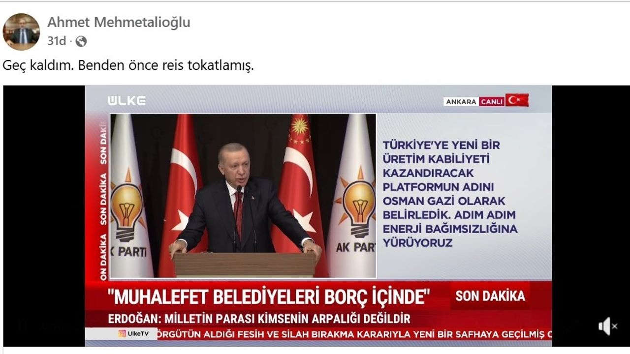 Cumhurbaşkanı Erdoğan, AK Parti Genişletilmiş İl Başkanları Toplantısı’ndaki Özgür Özel’e, "Ne yazık ki bulunduğu makamın hakkını veremiyor. Çok ve boş konuşarak hem kendisini hem partisini komik duruma düşürüyor. Ne dünyadan ne Türkiye’den haberi var. Biz onun yanlışlarını gaflarını düzeltmekten bıktık o her gün yenisini eklemekten bıkmadı. O dost bildiklerimiz nedir bu işin aslı diye soruyor, o da şok oluyor fakat daha sonra o da bakıyorum ki önüne ufak tablo koymuş, cevap veriyor. Ülkesini birilerine şikayet etmesini ana muhalefet liderine yakıştıramıyorum. Yabancı konukların huzurunda adeta taklacı güvercin gibi şekilden şekille girmesini taassup ile seyrediyoruz. İngiliz muhipler cemiyetine dönüşmesinden hiç memnun değiliz. Temennimiz sayın Özel’in titreyip kendine gelmesidir" konuşmasını video ile alıntılayan eski müftü, "Geç kaldım, benden önce reis tokatlamış" paylaşımı yaptı.