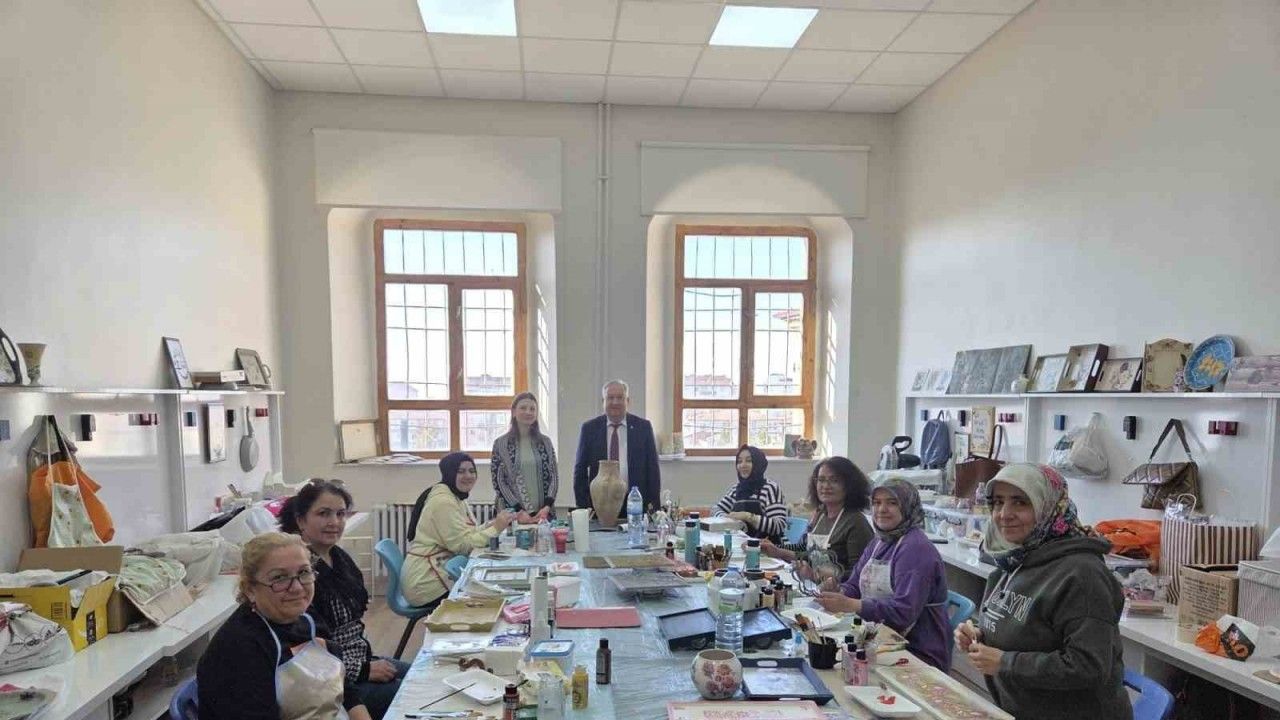 Açılan kursu ziyaret eden Niğde Halk Eğitim Merkezi Müdürü Orhan Çetin, kursiyerlerin çalışmalarını yerinde inceleyerek üretim süreçleri hakkında bilgi aldı.