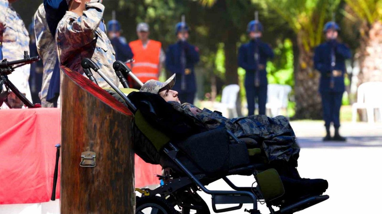 Manisa’nın Akhisar ilçesinde bulunan Akhisar Hava Meydan Komutanlığında 56 engelli bireyin bir günlüğüne temsili askerlik yapmasının ardından gerçekleştirilen yemin töreninde engelli bireyler gurur yaşarken aileleri sevinç gözyaşları döktü.