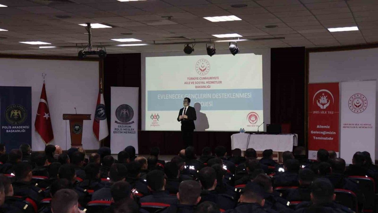 Erzurum’da Aile ve Sosyal Hizmetler İl Müdürlüğü tarafından hayata geçirilen "Ailemle Güvendeyim" projesi kapsamında 712 polis adayına eğitim verildi.
