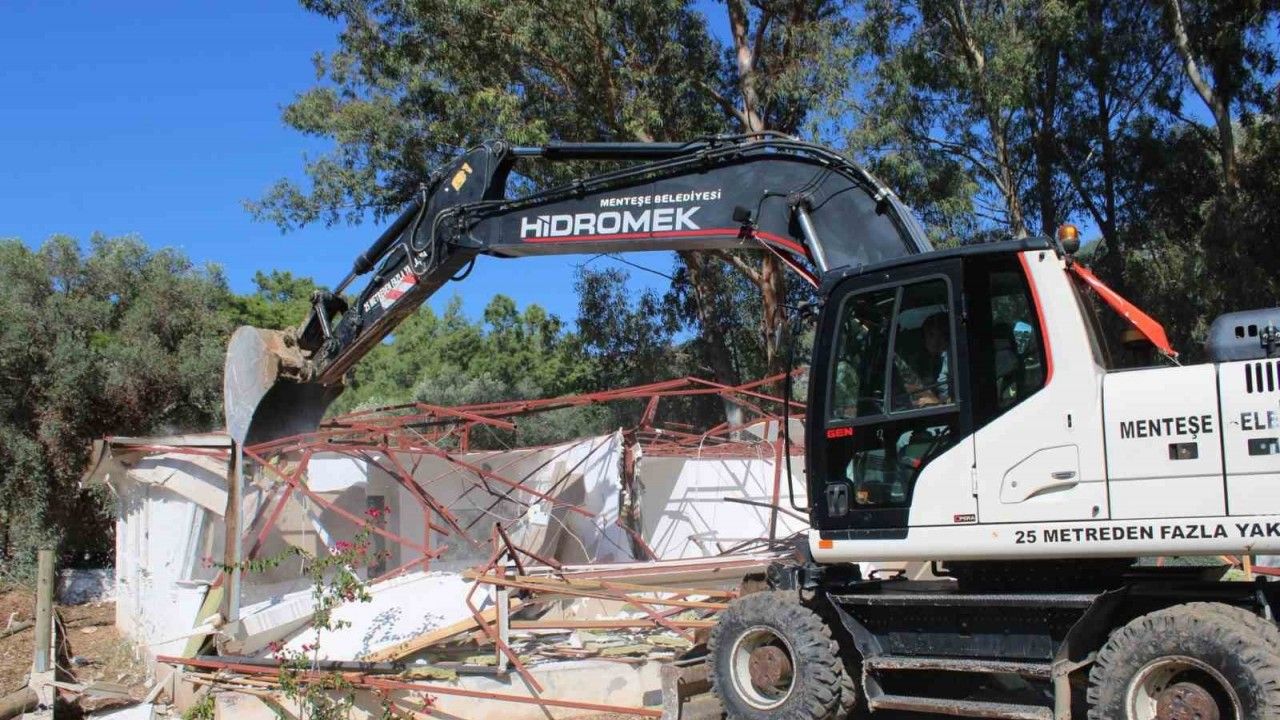 Menteşe Belediyesi ekipleri, imar kanununa aykırı olarak inşa edilen yapıların yıkımını kepçelerle gerçekleştirdi. Yıkım öncesinde belediye yetkilileri tarafından yapılarda bulunan eşyalar taşındı, elektrik tesisatları söküldü.