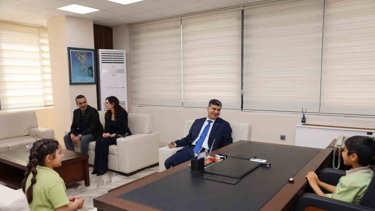 Keyifli bir sohbet ortamında geçen programda çocuklar, ziyaretten duydukları memnuniyeti dile getirip gelecekle ilgili hayallerini ve isteklerini Şener’le paylaştı. Başkanlık koltuğuna oturan Kadir ilk olarak Çevre Koruma ve Kontrol Müdürünü arayarak okul bahçesinin temizlenmesi talimatını verdi. Ardından Zabıta Müdürünü arayan Kadir, okul kantinin denetlenmesi, sağlıklı ve ucuz yiyeceklerin daha çok yer alması talimatını verdi.
