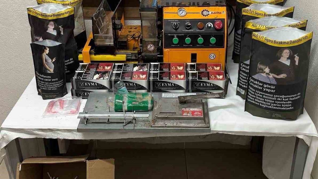 Manisa İl Jandarma Komutanlığı İstihbarat Şube Müdürlüğünce yapılan çalışmalar neticesinde, Akhisar ilçesi Medar Mahallesinde Z.T. (51/E) isimli şahsın iş yerinde KOM Şube Müdürlüğü ve Akhisar İlçe Jandarma Komutanlığı ekiplerince yapılan aramada, 1 adet elektronik sigara sarma makinası, 1 adet manuel sigara sarma makinası 8 bin 260 gram tütün, 10 bin 200 adet boş makaron, 1.280 adet dolu makaron ele geçirildi. Şüpheli şahıs hakkında adli tahkikata başlandığı açıklandı.