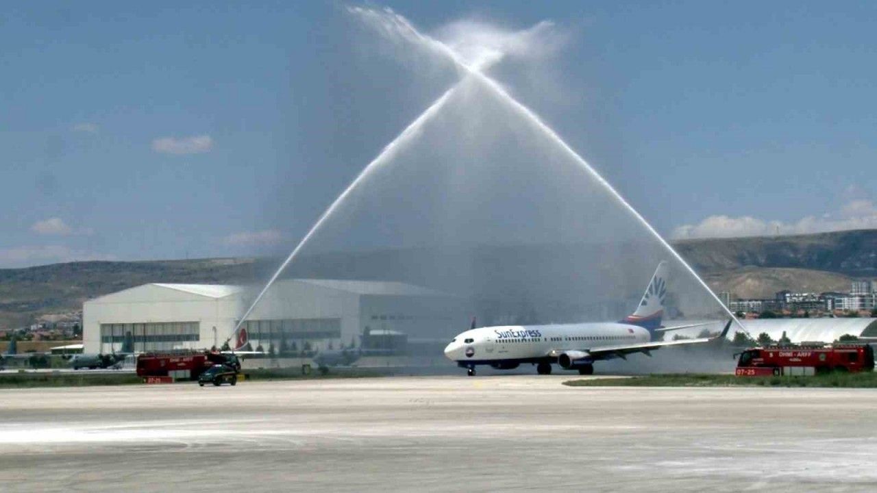 Avrupa Kayserili İşverenler Birliği (AKİB) yönetimini ve gurbetçi vatandaşları Kayseri’ye getiren uçak, havaalanında ‘su selamlaması’ ile karşılandı.