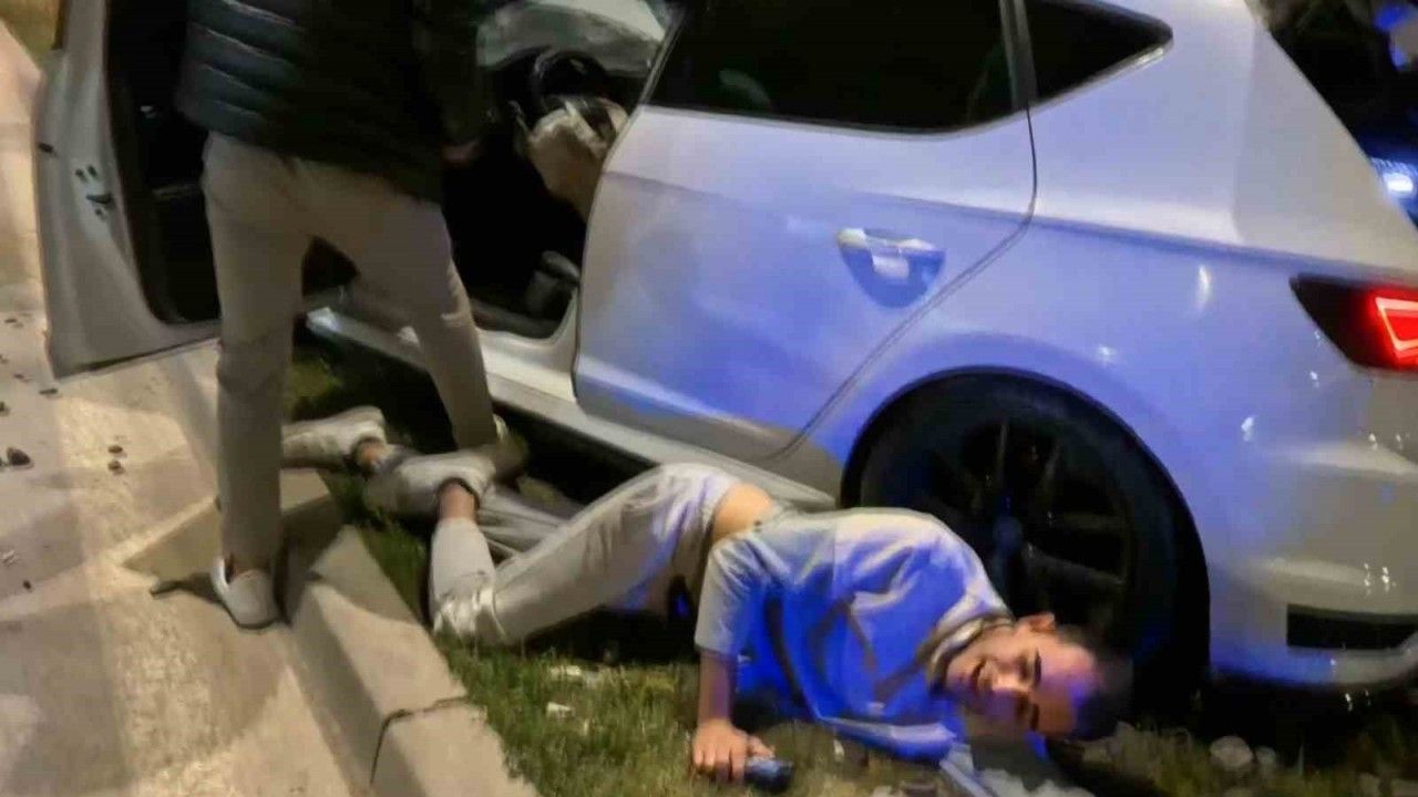 Aksaray’da belediyenin kazı nedeniyle trafiğe kapattığı yolda 30 dakika arayla 2 ayrı trafik kazası meydana gelirken, hurdaya dönen araçlarda 2 sürücü yaralandı. Yaralılardan biri yattığı refüjde arkadaşına, "Emniyet kemeri tak hayat kurtarıyor" diye seslendi.