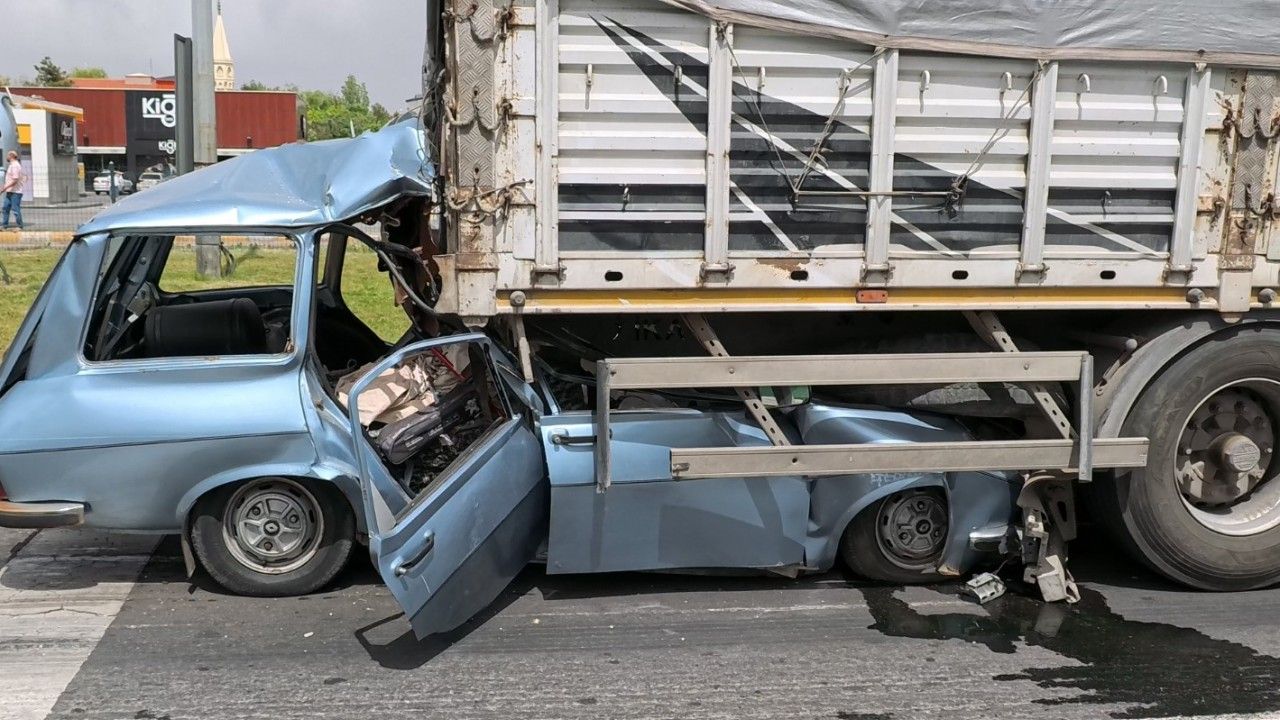 Aksaray’da tıra çarpan otomobilin sürücü ağır yaralandı.