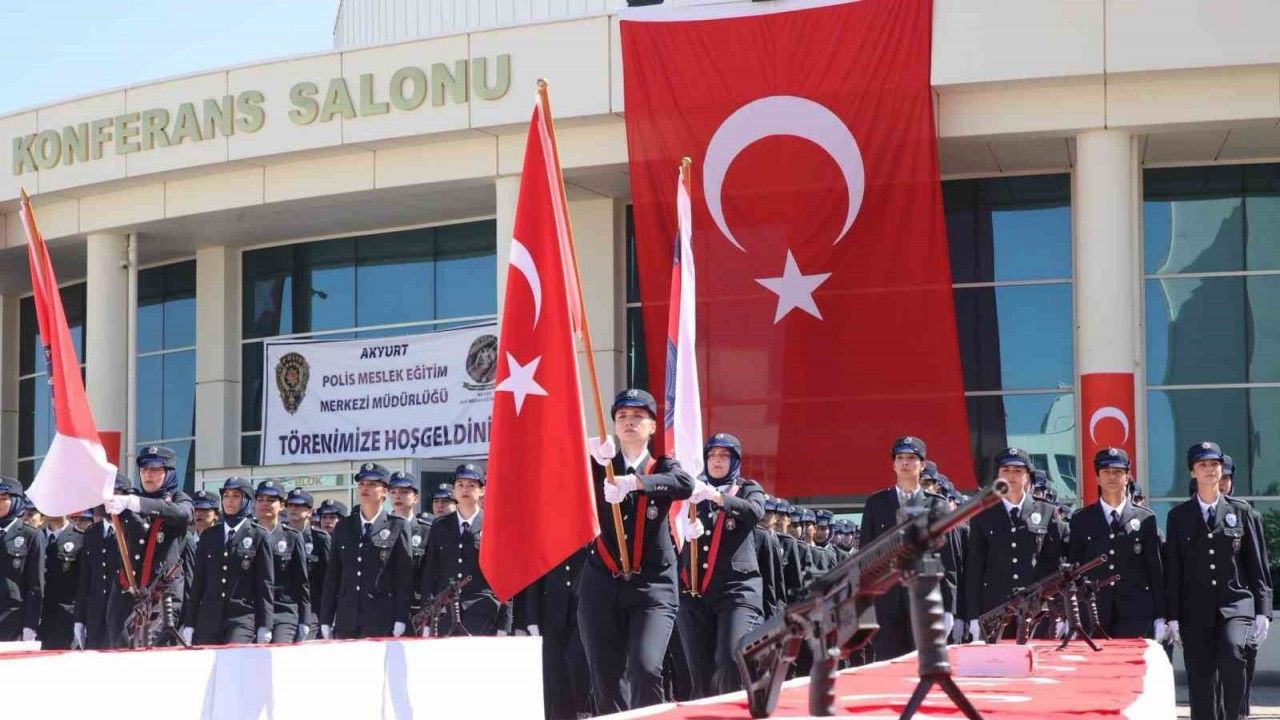 Akyurt Polis Meslek Eğitim Merkezi 2025 yılı mezuniyet töreni, okul bahçesinde düzenlenen coşkulu bir programla gerçekleştirildi. Tamamı kadın polis adaylarından oluşan mezunlar, ailelerinin de katıldığı törende yemin ederek göreve başladı. Saygı duruşu ve İstiklal Marşı’nın ardından başlayan törende dereceye giren kursiyerlere protokol üyeleri tarafından ödül ve plaket takdim edildi. Daha sonra tüm kadın polis adayları, Türk bayrağı ve silah üzerine ellerini koyarak yemin etti. Aileler de alkışlarla evlatlarının bu özel anına tanıklık etti. Tören sonunda protokol üyeleri, mezun olan kadın polisleri tek tek tebrik ederek görev hayatlarında başarılar diledi. Mezun polisler, eğitimlerini tamamlayarak Türkiye’nin farklı illerinde görev yapmaya hazır hale geldi.
