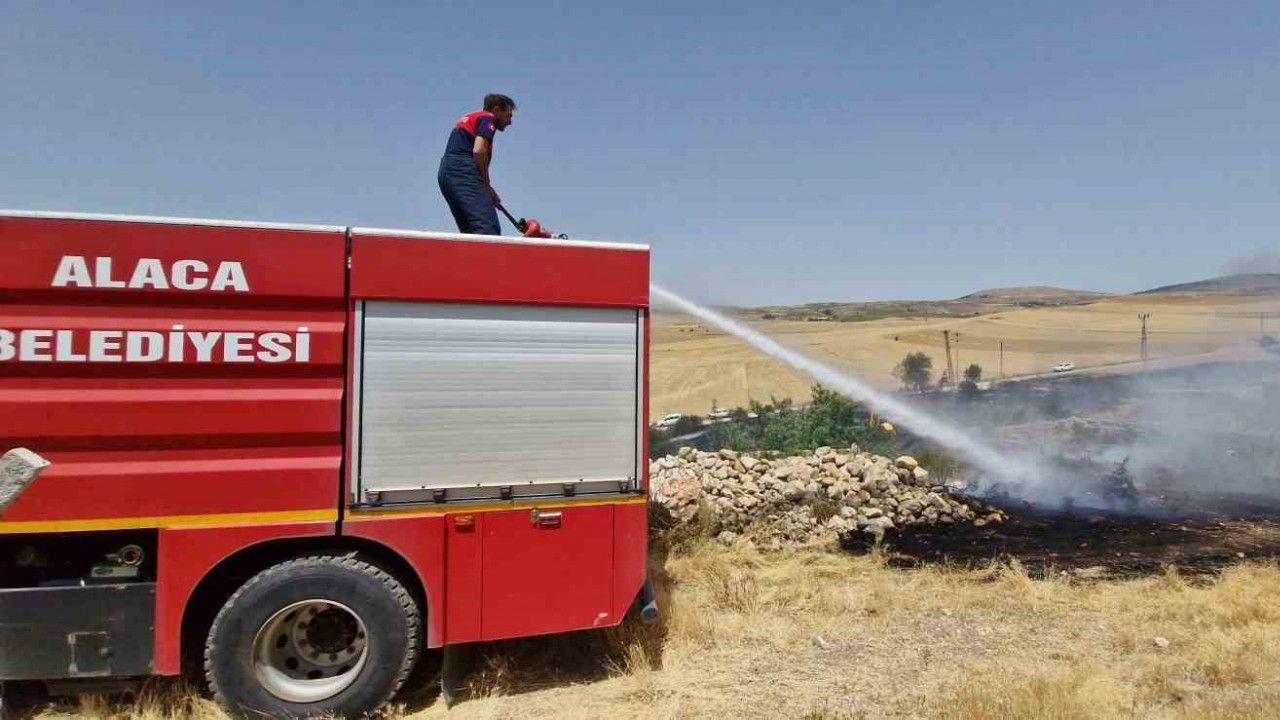 Alaca Belediyesi İtfaiye Müdürlüğü hasat döneminde meydana gelebilecek yangınlara karşı vatandaşların duyarlı olmasını istedi.