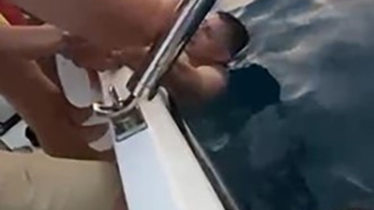 Boğulma tehlikesi atlatan Ukraynalı, tekneye alınarak sahile çıkarıldı. Olay anları teknede bulunan bir kişinin cep telefonu kamerasıyla saniye saniye kaydedildi.