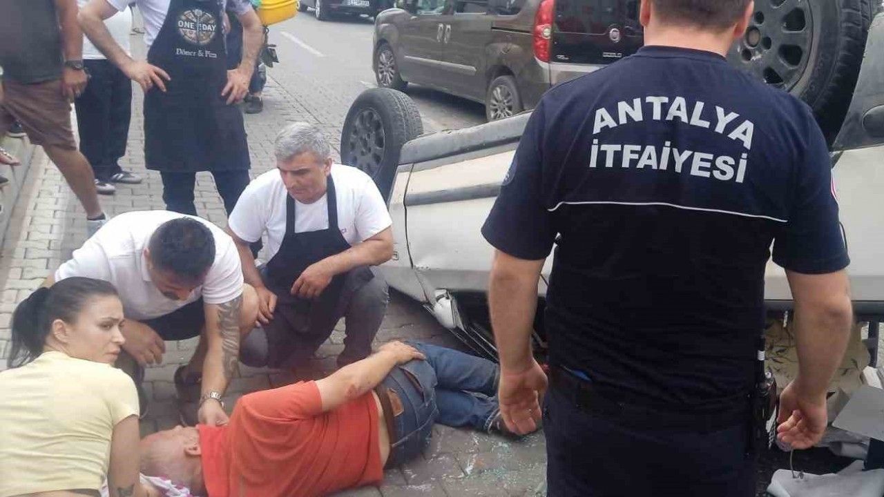 Kaza, bugün saat 13.00 sıralarında Alanya’nın Saray Mahallesi Atatürk Caddesi üzerinde meydana geldi. Edinilen bilgilere göre, Mehmet F. (60) idaresindeki 07 AUK 887 plakalı Skoda marka kamyonet, seyir halindeyken direksiyon hâkimiyetini kaybetmesi sonucu aynı yönde ilerleyen Alman uyruklu Dos S. M. (72) yönetimindeki EI SM 181 plakalı Seat marka otomobile çarptı. Çarpmanın etkisiyle savrulan kamyonet, yol kenarındaki palmiye ağacına çarparak takla attı. Kazayı gören çevredeki vatandaşların ihbarı üzerine olay yerine ambulans, polis ve itfaiye ekipleri sevk edildi.