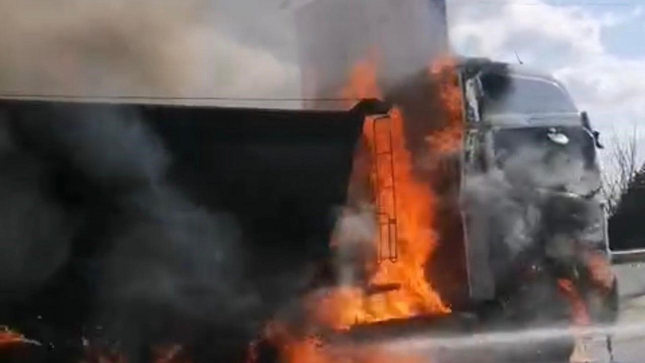 Uşak’ta park halindeyken alev alarak yanan tır kullanılamaz hale geldi.