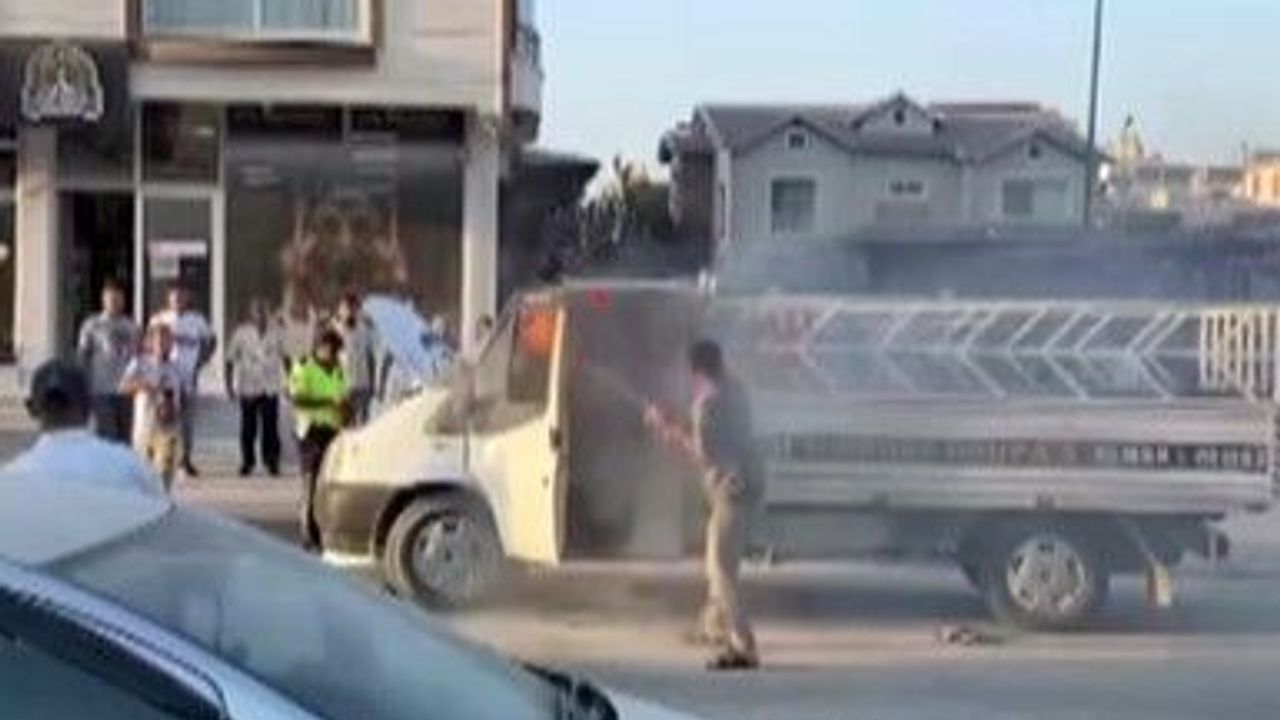 Hatay’da alevlere teslim olan park halindeki kamyonetteki yangına çevredeki vatandaşların yangına kola ile müdahalesi kameraya yansıdı.