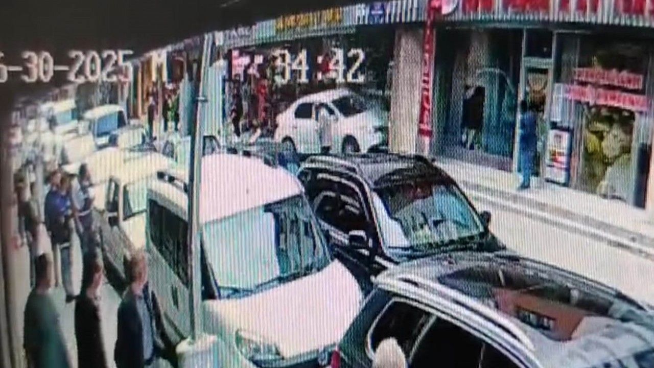 Olay anında mağaza önünden geçen 2 çocuk, otomobilin altında kalmaktan son anda kurtuldu. O anlar güvenlik kamerasına yansıdı.