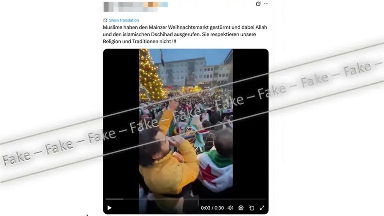 Almanya'nın güvenilir internet haber portalı Tagesschau'da yer alan habere göre ülkede Ekim ayından bu yana Noel pazarları hakkında asılsız iddialar içeren videolar ve fotoğraflar internet ortamında dolaşıma sokuldu. Birçoğu milyonlarca izleyiciye ulaşan videoların bağlamından koparıldığı, eklemeler yapıldığı, çekildiği tarih ve olayların farklı olmasına rağmen Noel döneminde gerçekleşmiş gibi yansıtıldığı belirlendi. Dezenformasyon içeren görüntülerde Suriye'de Beşar Esad rejiminin sona erdiği 8 Aralık 2024 tarihinin birinci yıl dönümünde Berlin ve Mainz kentinde 2015'ten sonra ülkeye gelmiş Suriye kökenlilerin şarkılar söyleyerek yaptığı kutlamalar 'Müslümanlar Noel pazarına baskın düzenledi, Arap müziği çaldı, Noel pazarına karşı gösteriler düzenledi' şeklinde dolaşıma sokuldu. Her iki kentteki gösterilerin Noel pazarında değil yakın bir bölgede gerçekleştiği polisin de eylemlerin sorunsuz geçtiğini bildirdiği belirtildi.
