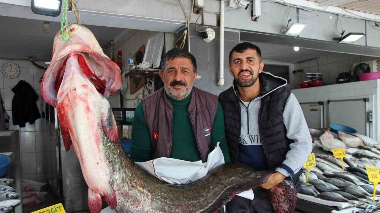 Samsun’un Altınkaya Barajı’nda balıkçılar tarafından 2 metre uzunluğunda, 85 kilogram ağırlığında dev bir yayın balığı yakalandı.
