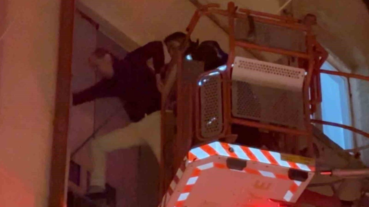 Polis ekipleri yol ve çevrede güvenlik önlemi alırken, itfaiye ekipleri itfaiye araç merdiveniyle apartmanın 2. katındaki dairesinin balkonuna ulaştı. Ancak bu sırada balkona çıkan yaşlı kadın itfaiye merdivenini de kabul etmeyerek ekipleri kovmaya çalıştı. Yaşlı kadının oğlu, itfaiye merdiveni kafesinden açık olan cam balkonun penceresine atlayarak içeriye girmeyi başardı. Annesine kendini hatırlatmaya çalışan adam yine başarılı alamayınca devreye polis ekipleri girdi. Yaşlı kadın oğlunu tekrar dışarıya attı. Yaşanan o anlar anbean kameralara yansıdı. Ardından polis kadının evine girerek kadını ikna etmeye çalıştı. Bir süre sonra kendine gelen kadın oğlunu hatırlayarak eve aldı. Ekipler de rahat bir nefes alarak olay yerinden ayrıldı.