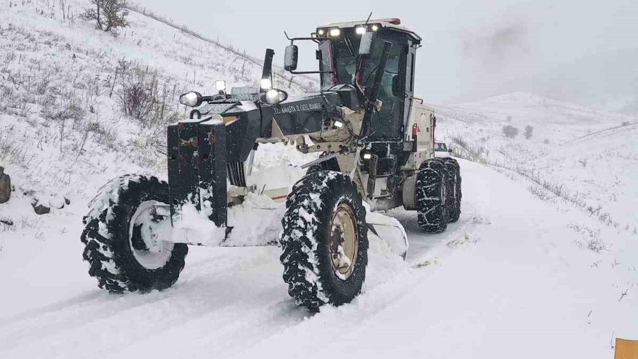 Amasya'da kar yağışı nedeniyle 28 köy yolu ulaşıma kapandı.