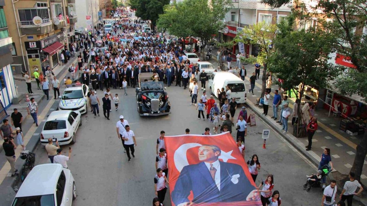 Protokol üyeleri, vatandaşlar, gençler ve Meksika, Tayland, Polonya, Rusya ile Kırgızistan’dan gelen halk dansları ekiplerinin katıldığı "Atatürk ve Bayrağa Saygı" yürüyüşü düzenlendi. Metrelerce uzunluktaki Türk bayrağını taşıyan gençler vatandaşlar tarafından coşkuyla alkışlandı. Yavuz Selim Meydanı’nda Atatürk anıtına çelenklerin sunulmasının ardından saygı duruşunda bulunulup İstiklal Marşı okundu. Vali Önder Bakan, Garnizon Komutanı Tuğgeneral Kemal Çakıroğlu ve Belediye Başkanı Turgay Sevindi anıt şeref defterini imzaladı.