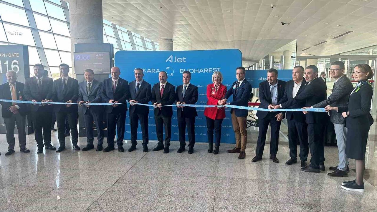 TAV Havalimanları tarafından işletilen Ankara Esenboğa Havalimanı'ndan AJet Havayolları'nın Bükreş'e düzenlediği ilk uçuş, törenle uğurlandı. Bugün saat 17.30'da Boeing 737-8 MAX tipi uçakla gerçekleştirilen VF595 sefer sayılı ilk uçuşla yolcular Ankara'dan Bükreş'e hareket etti. Düzenlenen törene Ankara Esenboğa Havalimanı Mülki İdare Amiri Cem Afşin Akbay, Devlet Hava Meydanları İdaresi (DHMİ) Esenboğa Başmüdürü Yücel Karadavut, AJet Havayolları Genel Müdürü Kerem Sarp, TAV Ankara Genel Müdürü Nuray Demirer, ATO Başkanı Gürsel Baran ile havalimanı ve havayolu çalışanları ile diğer davetliler katıldı. AJet Havayolları, Ankara-Bükreş hattında pazartesi, perşembe ve cumartesi günleri olmak üzere haftada üç gün karşılıklı sefer düzenleyecek.