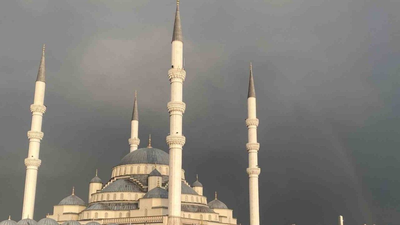 Ankara’nın Çankaya ilçesinde sağanak sonrası gökyüzünde oluşan gökkuşağı kartpostallık görüntüler oluşturdu.