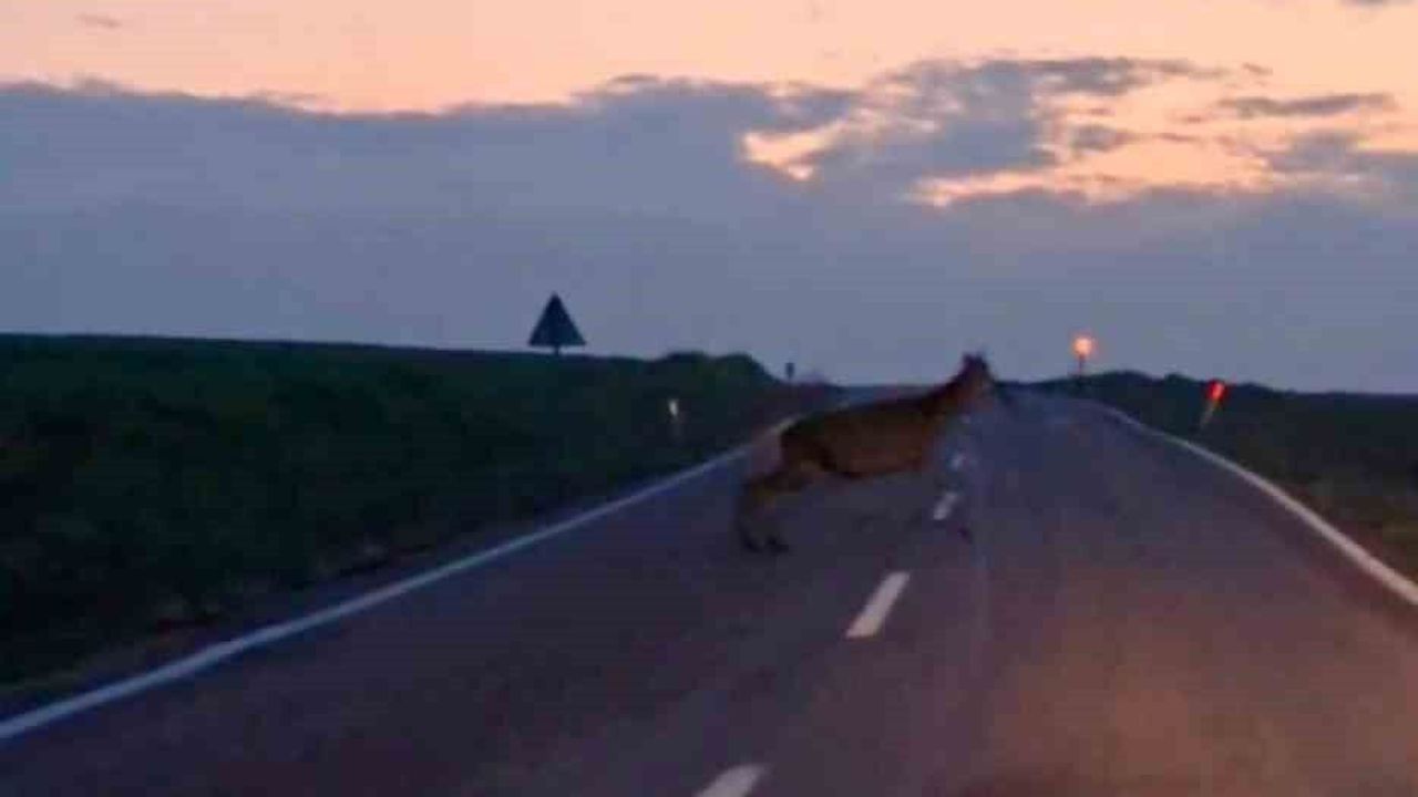 Ankara'nın Beypazarı ilçesindeki, Uruş Yolu üzerinde sabah saatlerinde işe giden bir vatandaş tarafından yaban geyiği sürüsü görüntülendi. Boş arazide sürü halinde yola doğru koşan geyikler nedeniyle sürücü bir süre bekledi. Geyiklerin geçişinin ardından yoluna devam eden vatandaş, o anları cep telefonu kamerasıyla kaydetti.