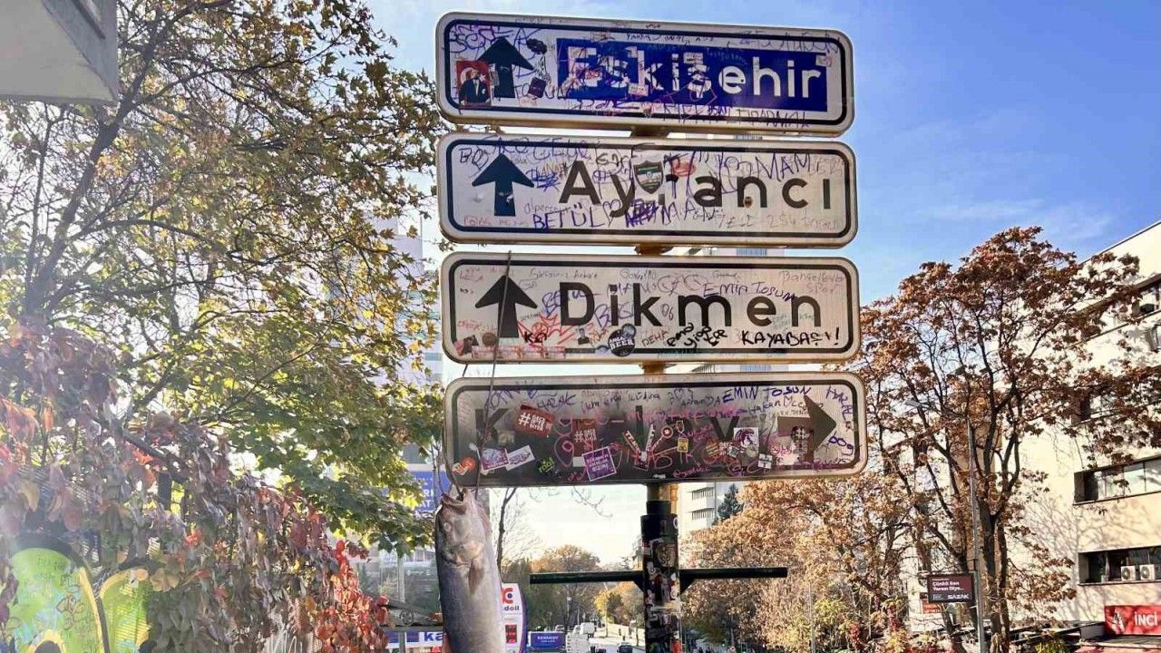 Ankaralı bir esnaf popüler hale gelen sokak tabelasına balık asarak tabela akımına son noktayı koymak istedi.