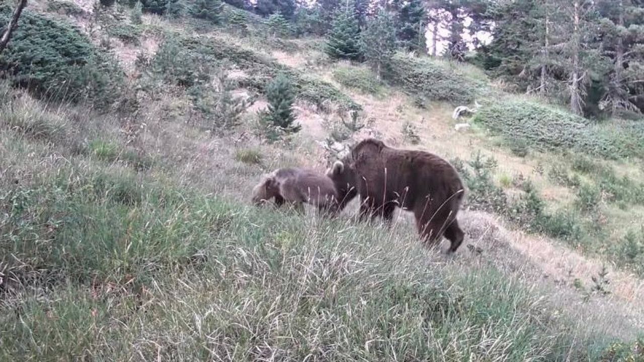 Çankırı’da doğaya yerleştirilen fotokapanlarla ormanda yiyecek arayan anne ayı ile yavruları görüntülendi.