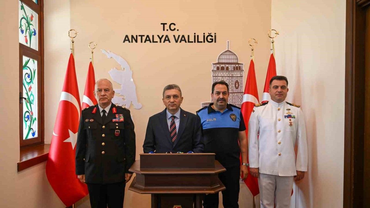Antalya Valisi Hulusi Şahin, Kurban Bayramı dolayısıyla Antalya genelinde alınan asayiş ve trafik tedbirlerine yönelik basına açıklamalarda bulundu. Antalya Valiliği Hükümet Konağında gerçekleştirilen Basın Bilgilendirme Toplantısına Vali Hulusi Şahin’in yanı sıra, İl Jandarma Komutanı Tuğgeneral Tarık Hekimoğlu, İl Emniyet Müdürü İlker Arslan ve Sahil Güvenlik Grup Komutanı Yarbay Tolga Coşkun ve basın mensupları katıldı.