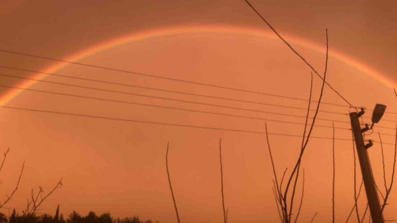 Serik Yeşilyurt Mahallesi'nde gökyüzünde iki gökkuşağını aynı anda gören çiftçi, büyük heyecan yaşadı. O anları cep telefonuyla kaydeden çiftçinin heyecanlı anlatım tarzı tebessüm ettirdi. Yağan yağmur sonrası, çifte gökkuşağını görüntüleyen çiftçi, 'Görüyorsunuz anlatmaya gerek yok. Güzel bir duygu. Serik'te semalarda çift gökkuşağı. İnanılmaz anlar. Harika bir his. Bir bakın Allah ve Muhammed aşkına bir bakın. Harika, gökkuşağı tam oluştu arkadaşlar' ifadelerini kullandı.