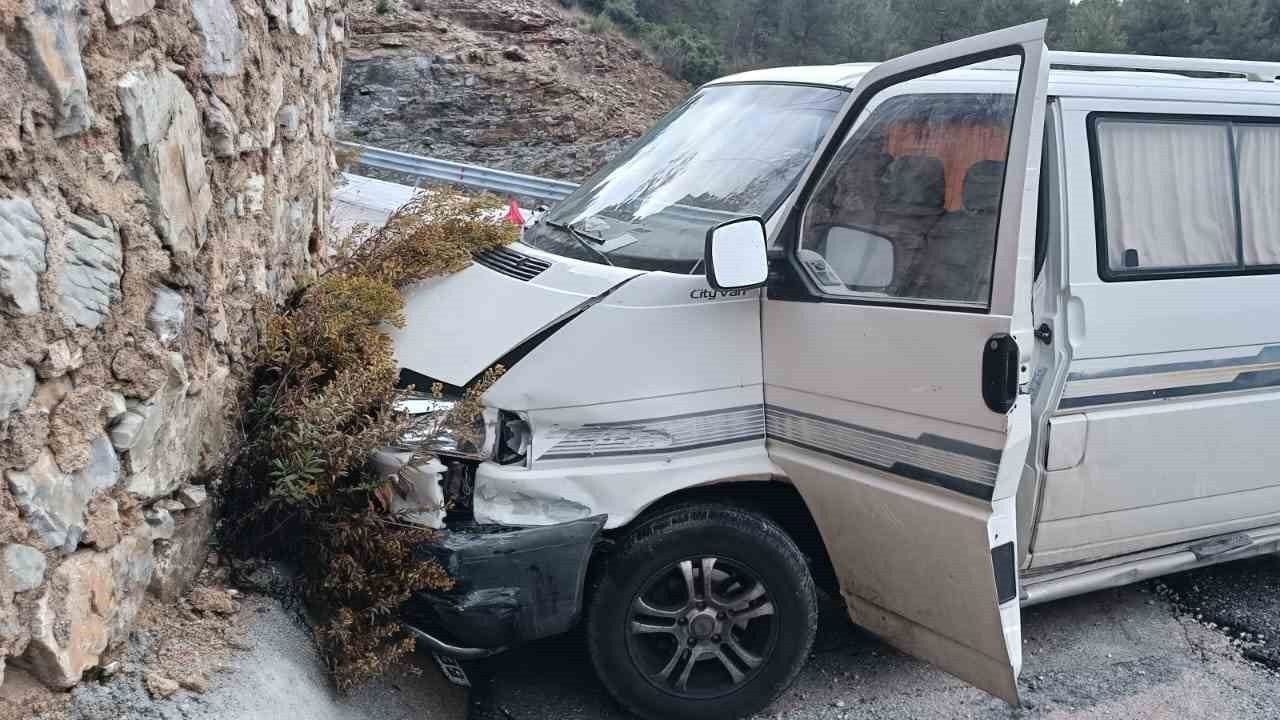 Antalya’nın Akseki ilçesinde kontrolden çıkarak yol kenarındaki istinat duvarına çarpan aracın sürücüsü hafif şekilde yaralandı.