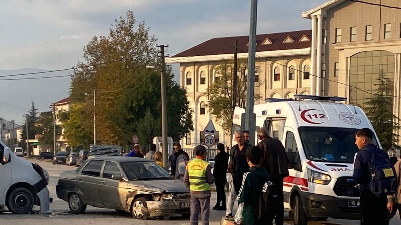 Kaza saat 09.00 sıralarında Akhisar mahallesi 2. Fatih caddesinde meydana geldi. 2. Fatih caddesinde seyir halinde olan Sürücü Selver Ş.(35) yönetimindeki 16 LKS 44 plakalı otomobil ile ara sokaktan çıkan Davut Ö. Yönetimindeki 16 S. 6404 plakalı servis minibüsü çarpıştı. Kaza sonucu otomobilin sürücüsü yaralandı. Yaralı kaza yerine sevk edilen Ambulansla İnegöl Devlet Hastanesine kaldırıldı.