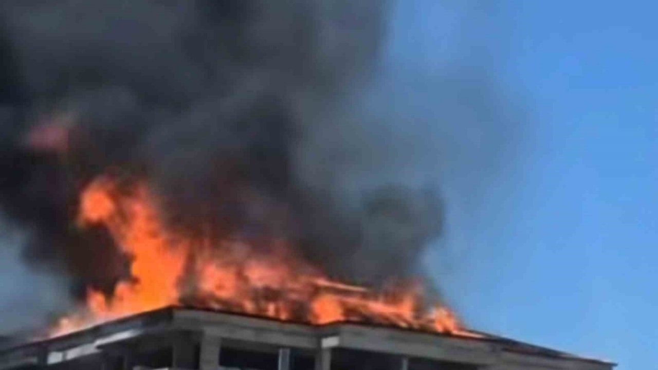 Gaziantep’in Araban ilçesinde yapımı devam eden 5 katlı bir apartmanın çatısında çıkan yangında korkulu anlar yaşandı.